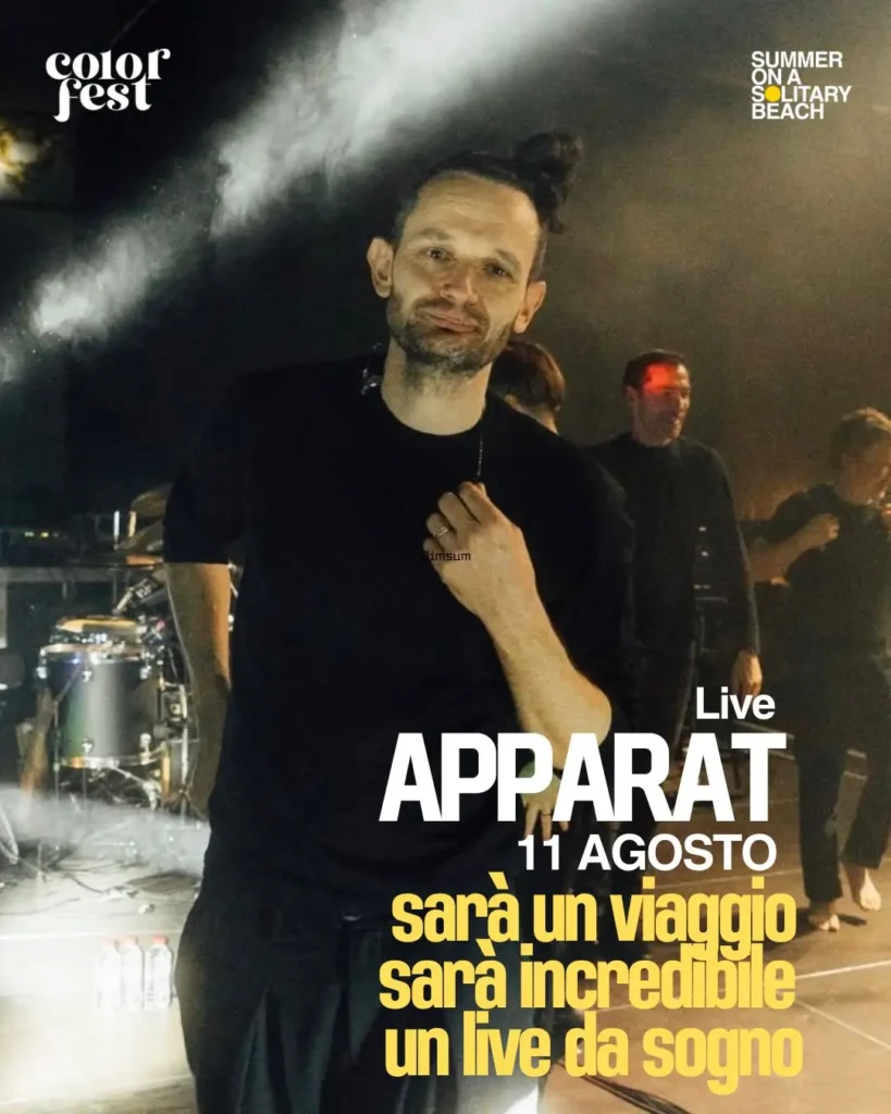 Il suo live al Color Fest sarà la prima volta in assoluto di Apparat in Calabria: un’esperienza immersiva, un viaggio sonoro tra i brani del nuovo album e i classici della sua produzione. Un evento raro e prezioso per il sud Italia.
