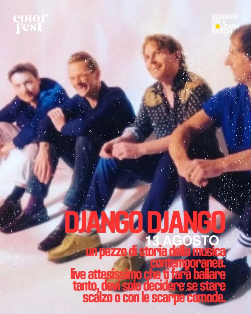 I Django Django sono un pezzo di storia della musica contemporanea britannica. Formati a Londra ma con radici scozzesi, dal loro omonimo album d’esordio del 2012 — nominato al Mercury Prize — hanno costruito un percorso artistico che attraversa art-rock, synth-pop, psichedelia e ritmi tribali, sempre con un’attitudine visionaria e una capacità unica di far ballare il pubblico. Quattro album in studio li hanno confermati come una delle band più creative e imprevedibili del panorama indie internazionale, da “Born Under Saturn” a “Glowing in the Dark” fino a “Off Planet”.