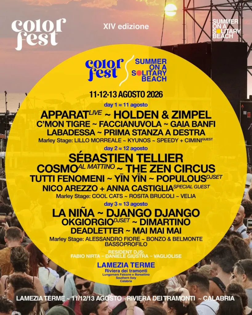 Tellier arriva al Color Fest con solo due date italiane nel 2026. Dopo anni di inseguimento da parte dell’organizzazione del festival, finalmente il maestro francese salirà sul palco della Riviera dei Tramonti. Un traguardo per il Color Fest e un’occasione irripetibile per il pubblico del sud Italia.